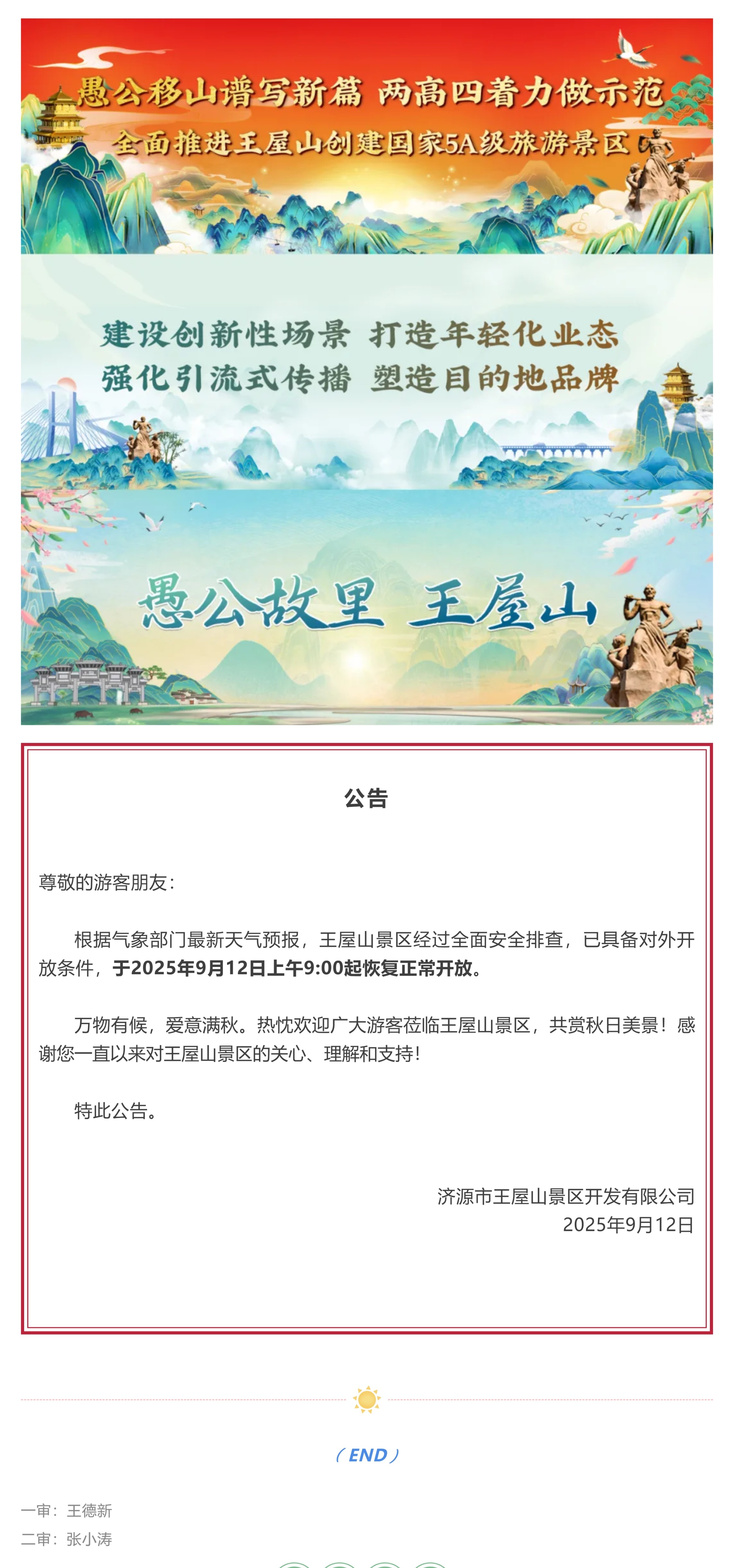 王屋山景区开园公告